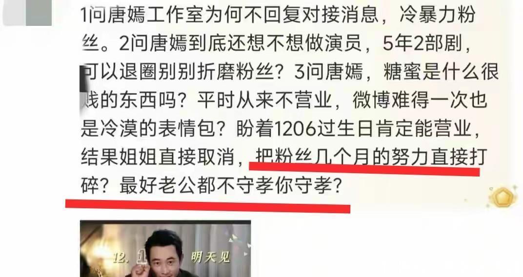唐嫣因为取消了原定12月6日的所有生日庆祝活动,这一决定却点燃了部分粉丝积压已久的不满情绪,工作室评论区已“沦陷”。